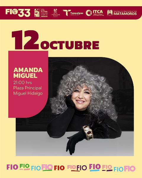 H. Matamoros, Tamaulipas.- El gobierno encabezado por Beto Granados hace una cordial invitación a toda la ciudadanía para vivir una noche inolvidable con el gran cierre del Festival Internacional de Otoño (FIO), el cual contará con la presentación estelar de la inigualable Amanda Miguel. Este evento, que marca el final de la 33ª edición del FIO, promete ser una velada llena de emoción, música y celebración.