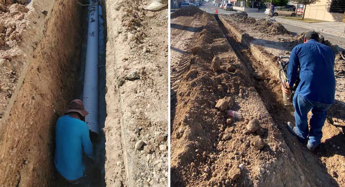 Reynosa, Tam.- Por instrucciones del Alcalde, Carlos Peña Ortiz, la Comisión Municipal de Agua Potable y Alcantarillado de Reynosa realiza trabajos de reemplazo de tubería de PVC de 12 pulgadas de diámetro en la toma de descarga sobre la calle Dr. Plata, entre Dr. González y Avenida Rodolfo Garza Cantú, con el objetivo de mejorar el funcionamiento del sistema de drenaje sanitario en el sector y optimizar el servicio para las familias de la zona.