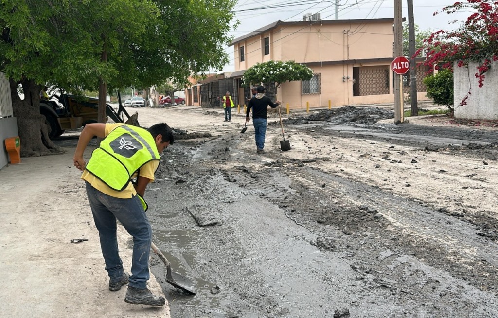 Cuadrillas del organismo realizaron acciones de retiro de sedimentos de lodo en calle Cuarta, entre J. M. Bocanegra y G. Pedraza, en la colonia El Olmo, además del pluvial de la calle Zertuche Ibarra con dren Reynosa así como calle Bernabé Sosa, entre Antonia Rodríguez y J. Arce, en la colonia Ribereña.