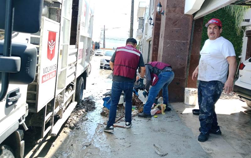 Trabajadores recolectores acudieron este viernes 28 de marzo al Centro de Salud IMSS-Bienestar de la colonia Jacinto Lopez 2 para apoyar al personal, así como a los vecinos con el retiro de basura, acción que también realizaron con los habitantes del fraccionamiento La Joya.