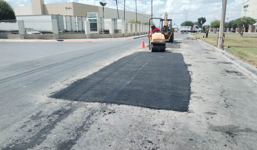 – También se efectuaron reparaciones de baches en la avenida Mike Allen del parque industrial Reynosa.