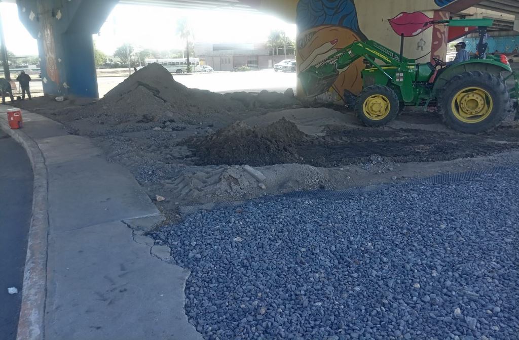 Con limpieza detallada, malla anti-maleza, pintura y colocación de piedra ornamental se transforma el crucero bajo el puente “El Húngaro”, por lo que se recomienda a los automovilistas, precaución al conducir.
