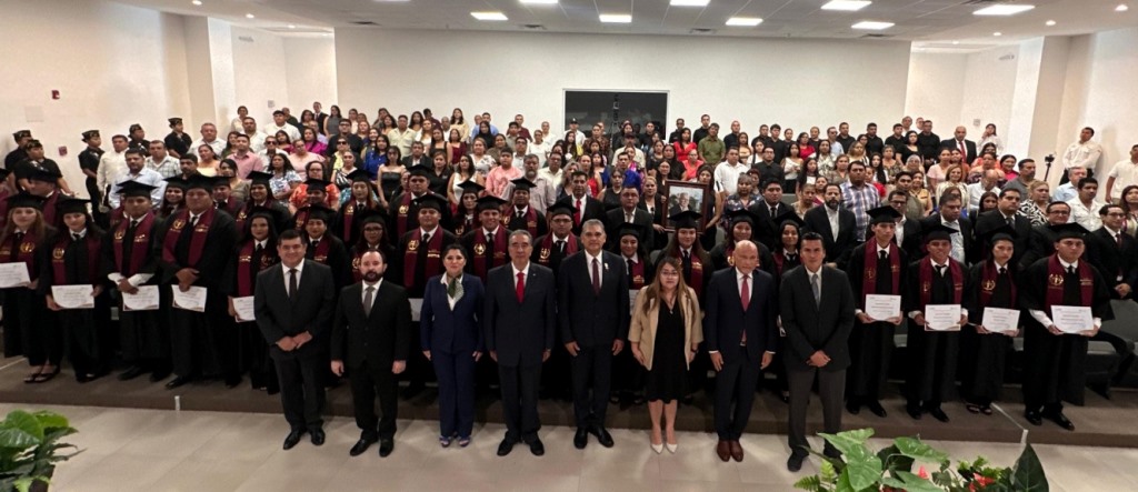 En compañía del rector, Jorge Lumbreras Castro, así como directivos de la universidad y principalmente familiares de los hoy profesionistas, Pancardo Escudero dijo que esta institución tiene un prestigio nacional e internacional porque además de formar al personal policial y de procuración de justicia, también a universitarios a través de sus tres licenciaturas que pronto serán cuatro, además de brindar estudios de posgrado.