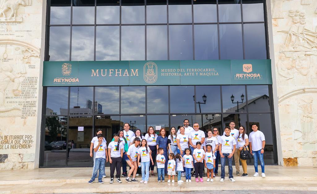 Los niños, acompañados por sus padres, socios del organismo, disfrutaron su recorrido con la Directora de Patrimonio Municipal, QFB Alicia De León Peña, quien junto con la guía ofreció una explicación detallada de la historia de Reynosa, plasmada en el interior y exterior del edificio.